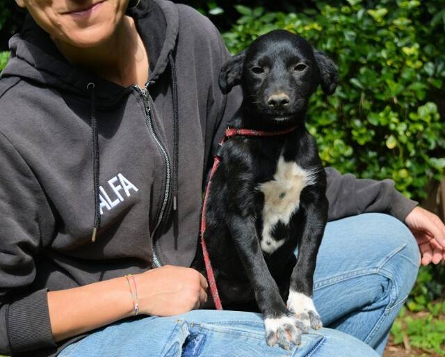 Für eine ordentliche Vorstellung haben wir uns gegenseitig interviewt, wie wir aussehen. Also, ich bin die Zena. Ich bin fast schwarz und habe ein weißes Lätzchen und weiße Pfötchen. Ich bin immer fröhlich und für jeden Spaß zu haben. Ich liebe Kuscheln mit meiner Schwester und meiner Mama und an Menschen muss ich mich erst mal gewöhnen. Aber wenn die wirklich so tolle Sachen mit mir machen, dann sollen sie schnell kommen. Ich soll ausrichten, am schnellsten geht es, wenn sie meine Vermittlerin anrufen.