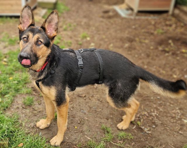 Beschreibung: Die sehr nette, verspielte und verträgliche MERIDA konnte nun endlich die Reise in ein Übergangszuhause antreten. Die junge Schäferhündin lebt hier mit einem Rüden zusammen, ist super verträglich und zeigt sich sehr verspielt. Auch mit Hündinnen ist sie gut verträglich.