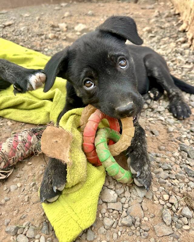 Elsa und ihre 6 Geschwister hatten einen schweren Start ins Leben: Sie wurden unweit der Finca Zoe bei großer Hitze in einem Gebüsch nahe eines Müllcontainers entdeckt. Zu diesem Zeitpunkt waren sie erst etwa zwei Wochen alt – die Augen noch nicht ganz geöffnet, unfähig zu laufen oder selbstständig zu fressen. Für Welpen in diesem Alter ist die Perrera kein geeigneter Ort, da sie noch keinen Impfschutz besitzen und rund um die Uhr Pflege benötigen. Deshalb durften die Kleinen auf die Finca Zoe ziehen, wo sie liebevoll mit der Flasche großgezogen wurden.