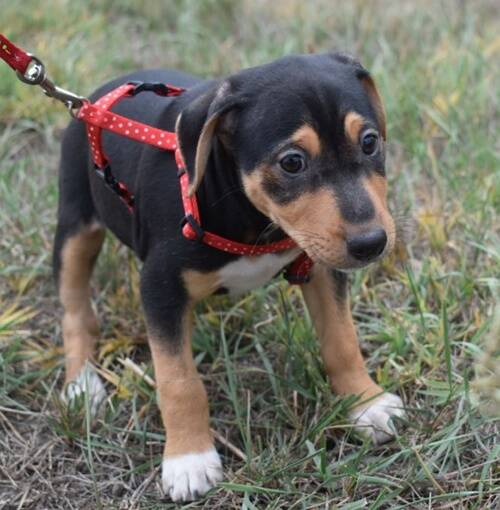| Farbe: | schwarz mit braunen und weißen Abzeichen |