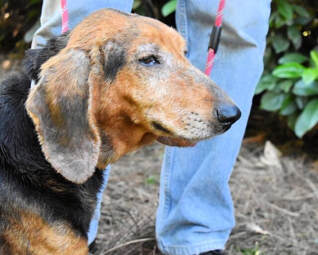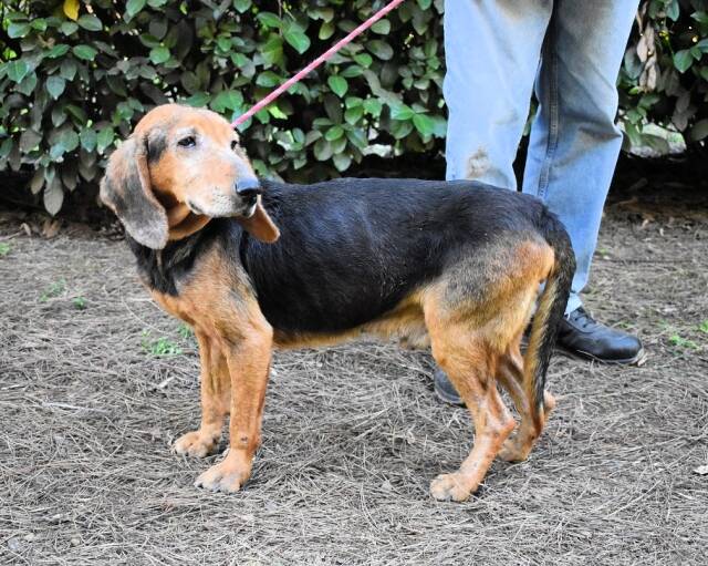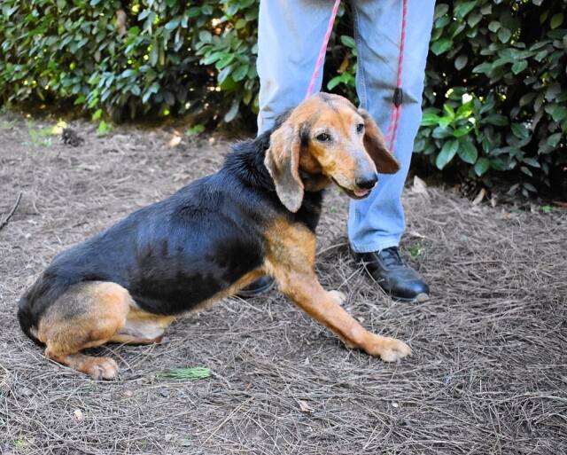 Die mit uns befreundeten Tierschützer durften Cimbro im Oktober 2025 das erste mal in seinem Verließ im großen, lauten, traurigen Hundelager besuchen. Dort eingeliefert worden war der arme Tropf erst Anfang des Monats, war somit vermutlich bei der Begegnung mit den Tierschützern noch etwas durch den Wind: neue Umgebung (kahle Betonzelle), keine Bewegung (weil 24/7 in kahler Betonzelle), neue Hundekumpels (Rüden und Weibchen, das Zusammenleben scheint gut zu funktionieren), das Futter so-so (war früher vermutlich nicht besser), seltsame Menschen / Wärter, die nie Zeit haben und für die jeder Hund nur eine Nummer ist (und das war früher mit ziemlicher Sicherheit auch nicht anders für Cimbro). Das könnte die Erklärung dafür sein, dass er auf den Besuch erstmal eher zurückhaltend reagierte. Von Aggression keine Spur, einfach nur vorsichtig. Die Tierschützer haben uns berichtet, dass Cimbro an den Umgang mit Menschen gewöhnt zu sein scheine und auch gut an der Leine laufe. «Die Leine scheint er zu kennen, aber er fühlt sich damit nicht ganz wohl. Sobald wir versucht haben, ihn in eine bestimmte Richtung zu lenken, bekam er Angst und hat sich etwas zurückgezogen.» Cimbro ist ein in die Jahre gekommener Jagdhund, und sowohl sein Verhalten als auch sein Zustand deuten darauf hin, dass er sein Leben bei einem Jäger gefristet hat und nun nicht mehr «zu gebrauchen» war. Ob er ausgesetzt und schlussendlich als Streuner von Hundefängern ins Lager gebracht worden war oder ob sein «Besitzer» ihn abgegeben hat, wissen wir nicht und spielt auch keine große Rolle. Fakt ist, er benötigt ganz dringend unsere Hilfe. Er braucht eine liebevolle Familie (oder Einzelperson), die ihm all das gibt, was ihm bislang verwehrt worden ist: Liebe, Respekt, Familienanschluss, gutes Futter und regelmäßige Mahlzeiten, einen warmen, weichen Schlafplatz, tägliche Abenteuerspaziergänge in der Natur, und nochmals Liebe, Liebe, Liebe. Denn Cimbro ist nicht nur ein armer alter Hund, der sich nie an gewisse Umgangsformen gewöhnen konnte, sondern sich davor fürchtet. Nein, Cimbro kann auch anders und hat den Tierschützern auch diese Seite sehr deutlich gezeigt. Er scheint ein sehr sensibler, kluger Hund zu sein, denn, nochmals O-Ton der Tierschützer: «Wenn Cimbro sich nicht bedroht fühlt, dann zeigt er, dass er im Grunde ein selbstbewusster, gar nicht ängstlicher Hund ist. Sobald er gemerkt hat, dass wir es nur gut mit ihm meinen, wurde er entspannter und hat sogar von sich aus den Kontakt zu uns gesucht.»