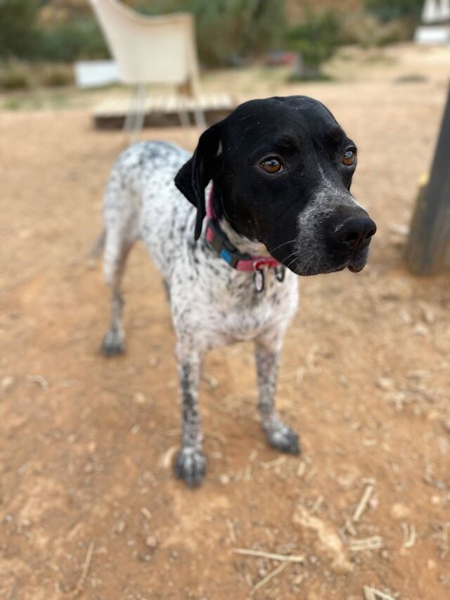 Beschreibung: Peppa (geb. ca. 2021, Schulterhöhe ca. 53 cm) ist eine kleine Pointer-Hündin mit einem ganz großen Herzen. Sie stammt von einem Jäger, der leider immer wieder Hunde zurücklässt, wenn sie für die Jagd „nicht nützlich genug“ sind. Für Peppa bedeutete das die Abgabe ins Tierheim – für uns jedoch ist es ein Glück, dass sie überhaupt hierher gefunden hat, denn viele Jagdhunde in Spanien haben dieses Glück leider nicht.