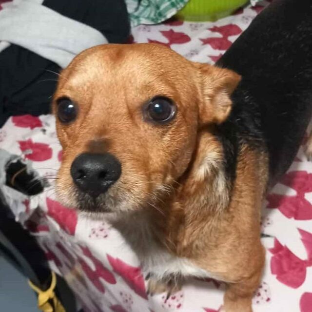 Er ist ein kleiner Mischlingsrüde von 6kg und ca. 30 cm.