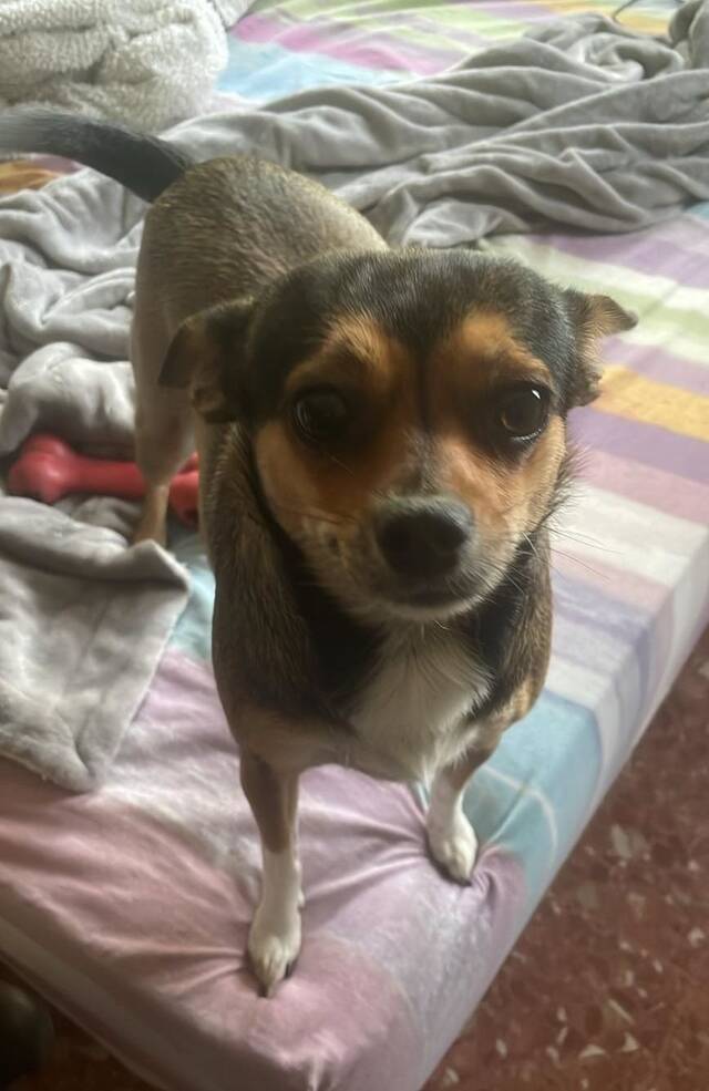 Myra lebte in einer Familie mit drei größeren Kindern, kennt Leine und Geschirr ebenso wie Autofahren und ist grundsätzlich stubenrein. Natürlich ist es für die kleine, etwas moppelige Hündin eine extreme Umstellung von der Familie in das Refugio und wir können nur hoffen, dass sie nicht alles verlernt. Man muss aber leider sagen, dass Myra außerhalb von Familie, Haus, Grundstück und "ihren Welpen" nahezu nichts kennengelernt hat. Der Kontakt zu den Menschen war sehr eng, Myra schlief im Bett und war sehr kuschelig. Wenn sie allerdings von „ihren Töchtern“ genervt war, wurden diese, trotz deutlicher Größenunterschiede, zurechtgewiesen.
