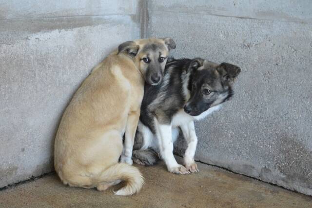 Unsere vier Hundekinder scheinen bislang noch nicht sehr viele Begegnungen mit freundlichen Zweibeinern gehabt zu haben. Bei den Besuchen der mit uns befreundeten Tierschützer im November 2025 zeigten sich alle vier schüchtern, vielleicht sogar ein wenig ängstlich. Es sind keine Angsthunde, aber sie kennen Berührungen, die Leine oder einfach nur die Gegenwart von Menschen, die es gut mit ihnen meinen, nicht. Aber keiner von ihnen hat Aggressivität gezeigt, weder die eine noch der andere hat zum Beispiel bei Berührung zu schnappen versucht, wie das einige Hunde aus Angst oder Unsicherheit tun. Nein, Quivira und ihre Geschwister haben Fluchtwege gesucht, sind unter den Trinkeimer gekrochen oder haben sich hinter einem ihrer Zellengenossen versteckt.