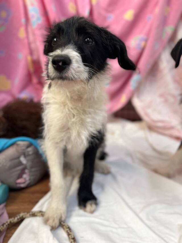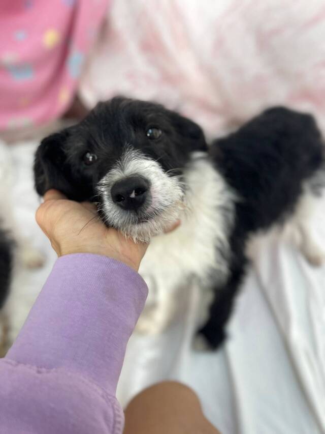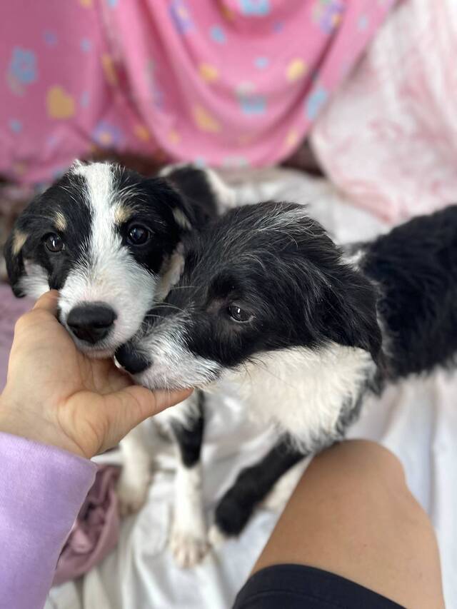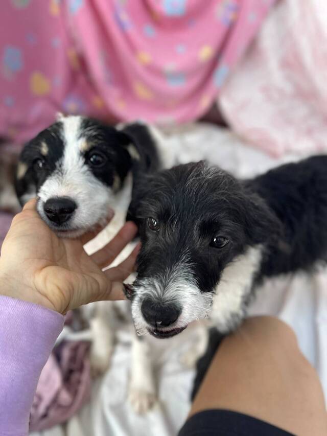 Beschreibung: Saul (*ca. 10/2025, ca. 50 cm) wurde gemeinsam mit seinem Bruder Hugo und einem dritten Welpen unter dramatischen Umständen gefunden. Die drei Welpen waren allein an einem felsigen Abhang unterwegs – ohne Schutz, ohne Futter und ohne Wasser. Sie waren so ausgehungert, dass sie beim Öffnen der Futtersäcke kaum warten konnten. Unter ihrem langen Fell waren sie nur Haut und Knochen.