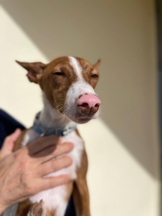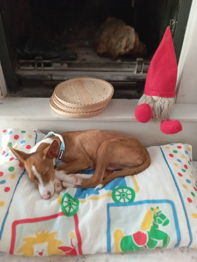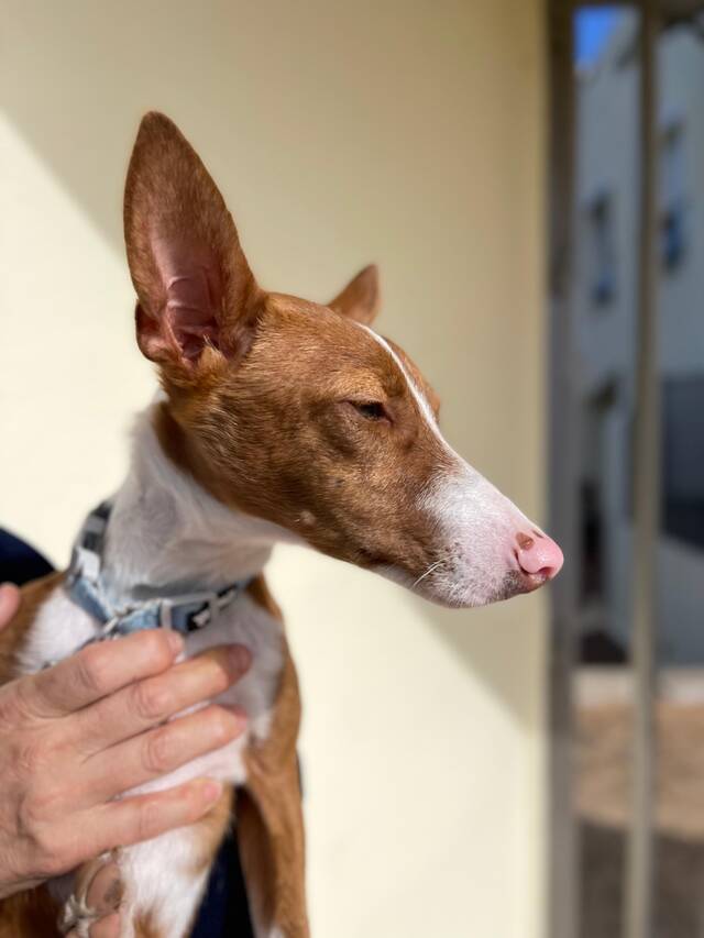 Vermutlich aufgrund seines schweren Starts ins Leben verteidigt er seine wertvollsten Ressourcen – die Mutter der Familie (die ihn ernährt) und das Futter selbst. Dabei ist er gar nicht so verfressen oder gar futterbesessen. Trotzdem verteidigt er Futter gegenüber seiner Artgenossen, und braucht dementsprechend Menschen, die dies managen und trainieren können und so in die richtige Richtung lenken. Deshalb sucht er ein erfahrenes Zuhause, vorzugsweise mit anderen Hunden und idealerweise mit Erfahrung mit Podencos. Am einfachsten wäre es natürlich, wenn Pepe als Einzelhund vermittelt würde, und seine Ressourcen nicht vor anderen Hunden verteidigen müsste. Das würde ihm jedoch keine gesunden Sozial- und Kommunikationsfähigkeiten im Umgang mit anderen Hunden ermöglichen. Pepe misst aktuell 38cm Schulterhöhe, wie groß er einmal werden möchte, können wir nicht sicher voraussagen.