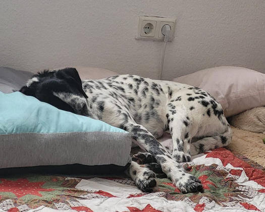 Der Rüde ist ein sensibler Hund, der Artgenossen liebt und unbedingt in der Nähe seiner Hundefreunde sein möchte. Er ist leinenführig, hat keinen nennbaren Jagdinstinkt, läuft bei seinen Hundekumpels aber mit wenn diese jagen gehen. Freilauf und das alleine bleiben ist in der Gruppe gut möglich für ihn, er orientiert sich stark an seinem Rudel. Bronco2/Michel1 ist futtermotiviert und reagiert sehr sensibel auf Körpersprache und Stimmung. Mit Strenge und Härte kommt man bei ihm nicht weit, er braucht Anleitung, Bestärkung und eine klare Führung, aber immer liebevoll und ruhig. Er muss überzeugt werden, seine Unsicherheit und Ängste zu überwinden - er kommt nicht schnell "von alleine". Unsichere Menschen hält er auf Abstand, bietet man ihm hingegen eine klare Führung, ist sensibel und feinfühlig für seine Körpersprache dann kommt er schonmal näher und lässt sich anfassen. Er ist ein sehr ehrlicher, freundlicher Hund, der genau so einen Menschen sucht.