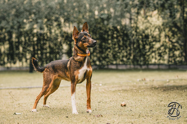 Yoko1 ist eine fröhliche, anhängliche und verspielte Hündin. Mit Menschen ist sie gerne im Kontakt und sitzt auch schon mal gerne bei Pflegeherrchen auf dem Schoß. Besucher begrüßt sie inzwischen genau so unbefangen, wie die anderen Hunde auf ihrer Pflegestelle. Yoko1 flitzt und hüpft auf ihrer Pflegestelle umher, nach Auslastung ist sie dann aber ruhiger und entspannter und kuschelt dann gerne mit ihren Menschen. Mit ihren Artgenossen ist Yoko1 verträglich und sie freut sich über jeden, der mit ihr toben will, somit dürften gerne schon andere Hunde in ihrem Zuhause leben. Katzen oder Kinder sollten allerdings nicht dort leben. Die Hündin ist wieselflink und es muss gut aufgepasst werden, damit sie nicht aus dem Haus schlüpft. Denn im Gegenteil zu drinnen, wo Yoko1 komplett unbeschwert ist, stressen sie draußen noch viele Situationen. An vertrauten Wegen ist das Spazierengehen mittlerweile aber schon viel entspannter und grundsätzlich ist die Leinenführigkeit relativ gut. An lauten Baustellen geht die Hündin waker vorbei und wenn es genügend Abstand zu fremden Hunden gibt, lässt sich Yoko1 nun auch beruhigen. Wichtig ist, dass die Person, die sie an der Leine hält ihr Sicherheit und Stärke vermittelt, da sie bei Unsicherheit Blickkontakt aufbaut und sich an ihr orientiert. Ein Jagdtrieb lässt sich mittlerweile erahnen, obwohl sie momentan vor allem versucht Vögeln hinterher zujagen. Auch Auto fahren durfte die Hündin schon kennenlernen, allerdings macht sie das immer noch nervös. Eine Dreiviertelstunde kann Yoko1 nun bereits alleine bleiben, dabei ist sie allerdings in ihrer Schlafbox, da sie sehr neugierig ist und auch manchmal versucht sich was vom Tisch zu stibitzen. Treppen gehen klappt bei Yoko1 dagegen problemlos und sie ist weitestgehend stubenrein. Vieles ist noch ausbaufähig, aber sie möchte gefallen und ist motiviert zu lernen und tut ihr Möglichstes dafür, daher sollte das mit der richtigen Unterstützung gut klappen.