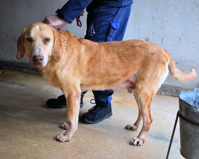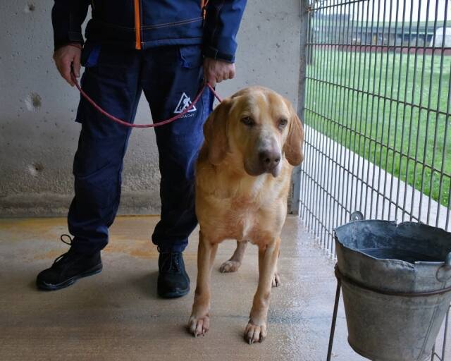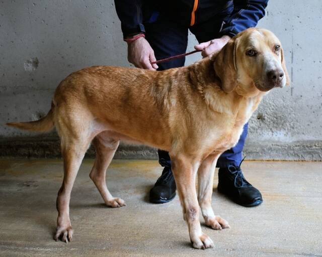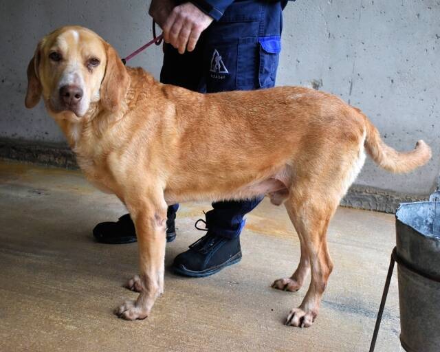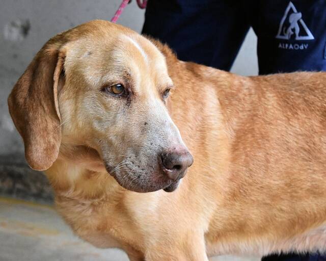 Dioneo ist Leishmaniose-positiv. Eine Krankheit, die behandelt werden müsste. Eine einfache kostengünstige Tablette am Tag könnte ihn retten. Im Lager ist das die Mühe nicht wert, es bringt den Betreibern keinen Mehrwert. Seine Ohrenspitzen bluten immer wieder. Nicht dramatisch, aber regelmäßig. Seine Haut ist entzündet. Dermatitis. Seine Hinterbeine sind geschwollen, besonders das rechte. An seiner Brust sitzt ein Knoten. Es sind keine Bilder, die schreien. Es sind Bilder, die man übersieht, wenn man nicht genau hinschaut. Es sind keine spektakulären Bilder, es sind stille. Und genau das ist das Problem. Leishmaniose tut nicht immer laut weh. Aber sie zehrt, langsam, unaufhaltsam wenn unbehandelt. Ein Körper, der sich wehrt - ein Hund, der trotzdem freundlich bleibt. Er akzeptiert die Leine, er sucht Interaktion und er hebt den Kopf, wenn jemand kommt. Er hätte allen Grund, misstrauisch zu sein. Stattdessen steht er da, ruhig und sanft, mit dieser leisen Freundlichkeit, die im Vorstellungstext so leicht wirkte – und heute in einem Körper lebt, der längst um Hilfe bittet.