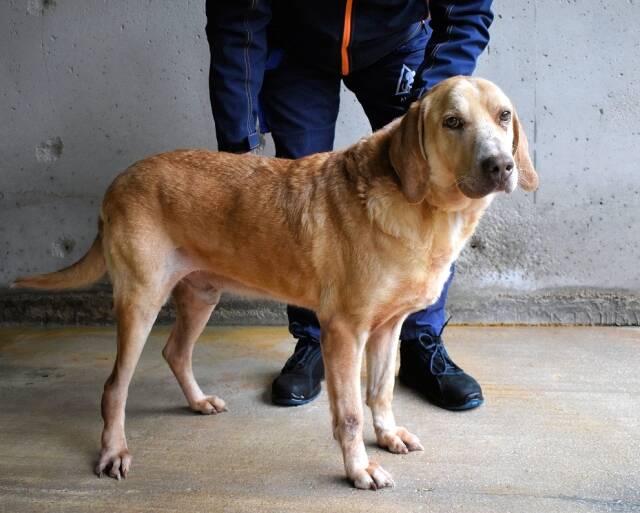 Auch für den lieben fünfjährigen Rüden Dioneo wäre ein Stock gerade genau der gleiche, große Schatz in seinem tristen, traurigen Alltag in einem Betonzwinger ohne Auslauf, Anregung und medizinische Behandlung. Seit März in diesem Jahr ist der freundliche Dioneo im Zwinger eingesperrt und konnte sich dennoch sein goldenes Herz uns Menschen gegenüber bewahren. Zunächst reagierte der hübsche hellbraune Bub etwas schüchtern auf den Besuch der Tierschützer vor Ort. Doch mit ruhiger Ansprache öffnete er sich, ließ sich gerne streicheln und alberte sogar ein wenig herum.