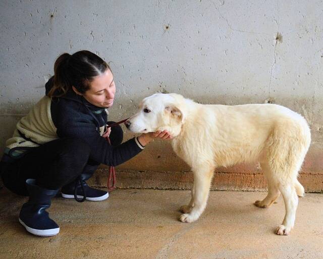 Roderico ist noch schüchtern, er hat wohl bisher wenig Kontakt zu lieben Menschen gehabt. Den wunderbaren Tierschützern gegenüber hat er sich als schüchtern, aber interessiert gezeigt und hat in sicherer Entfernung einen kleinen Tanz aufgeführt, in dem er immer weiter auf sie zugegangen ist. Was jetzt noch Skepsis ist, kann in einem Umfeld, wie wir es ihm so sehr wünschen, Verspieltheit und dann Vertrauen werden.
