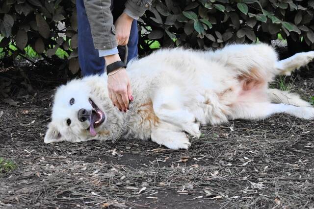 Hadrianos Vermittlung ist dringend – aber nicht im Sinne von „schnell irgendwohin“. Denn genau so etwas steht bei der Gemeinde, die seine Unterbringung zahlt, leider im Raum: dass man die Hunde möglichst zügig „weiterreicht“, hauptsache weg. Und wo Maremmanen in Italien dann landen, können Sie sich vermutlich denken.