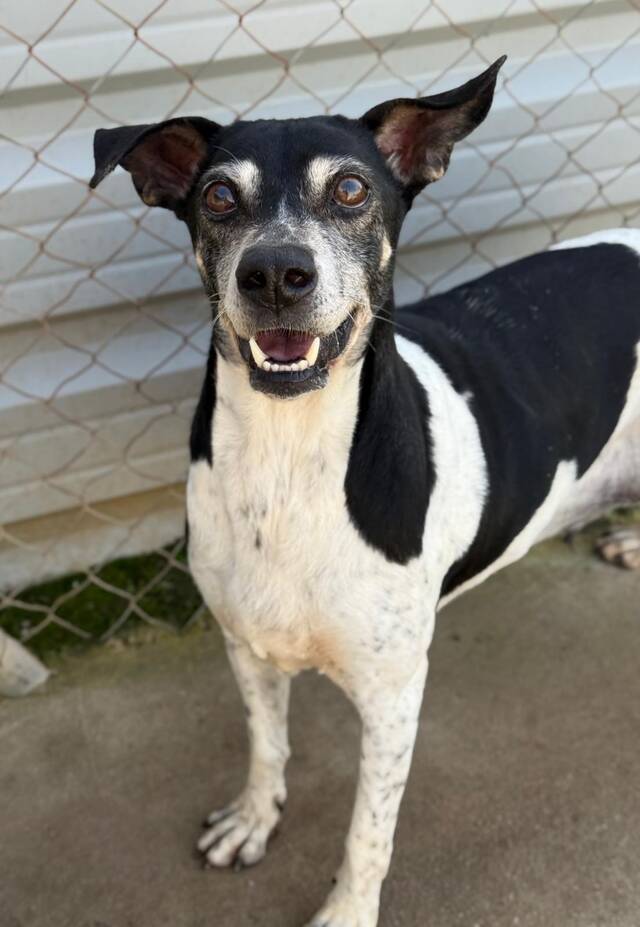 Die neunjährige Mischlingshündin Teri hat in ihrem Leben vermutlich schon sehr viel leisten müssen. Sie stammt aus einer völlig überforderten Haltung mit insgesamt 17 Hunden. Als ihr früherer Besitzer plötzlich verstarb, blieb die Hundegruppe sich selbst überlassen und wurde nicht einmal mehr gefüttert, bis sie schließlich gerettet wurden und einige von ihnen über Umwege zu uns ins Refugio kamen.