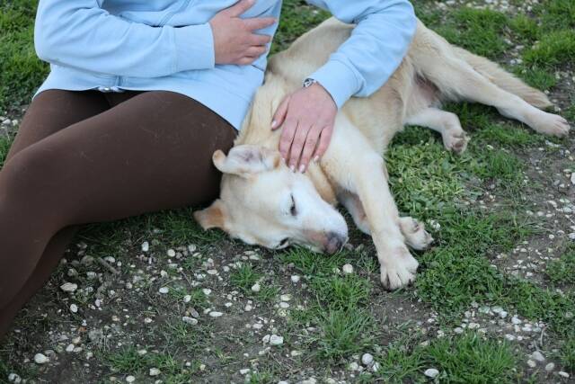 Wenn man sich zu ihr setzt, dauert es keine zwei Sekunden, bis sie sich leise anlehnt. So, als hätte sie genau darauf gewartet. Jede Streicheleinheit wird von ihr aufgenommen wie ein kleiner Schatz. Man spürt richtig, wie sehr sie Nähe genießt, als würde sie sagen: "Das ist alles, was ich brauche."
