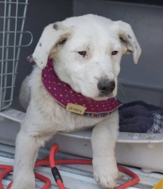 Dixie reist gechipt und geimpft in ihr Zuhause.